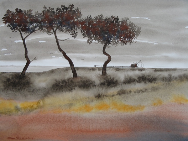 Vous êtes ici : Accueil Galerie Les arbres en aquarelle Pins à Lancastria sépia
