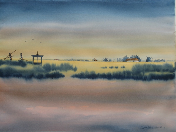 Aquarelle: paysage d'hier et d'aujourd'hui 46 x 61 cm