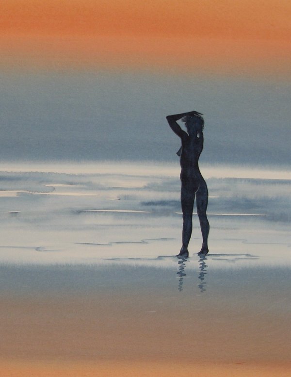 Nue sur la plage Aquarelle Format: 24 x 30 cm